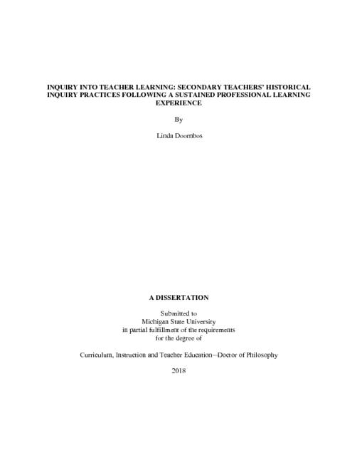 Inquiry into teacher learning : secondary teachers' historical inquiry practices following a sustained professional learning experience