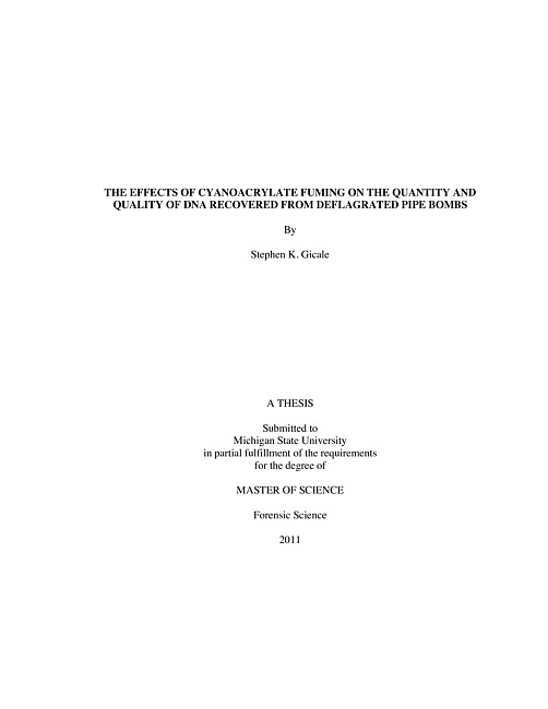 The effects of cyanoacrylate fuming on the quantity and quality of DNA recovered from deflagrated pipe bombs