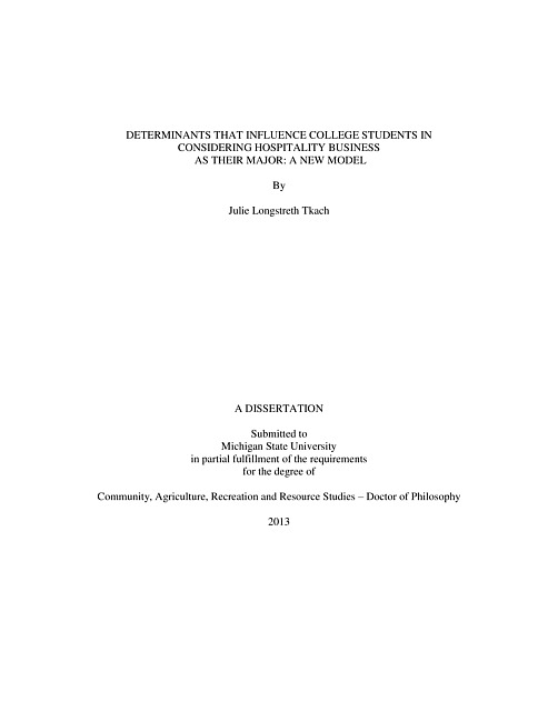 Determinants that influence college students in considering hospitality business as their major : a new model
