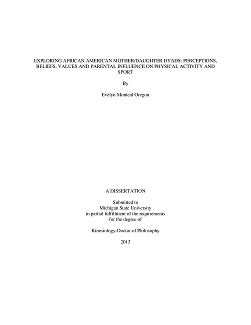 Exploring African American mother/daughter dyads : perceptions, beliefs, values and parental influence on physical activity and sport
