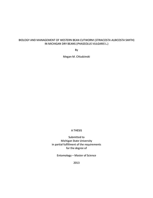 Biology and management of western bean cutworm (Striacosta albicosta Smith) in Michigan dry beans (Phaseolus vulgaris L.)
