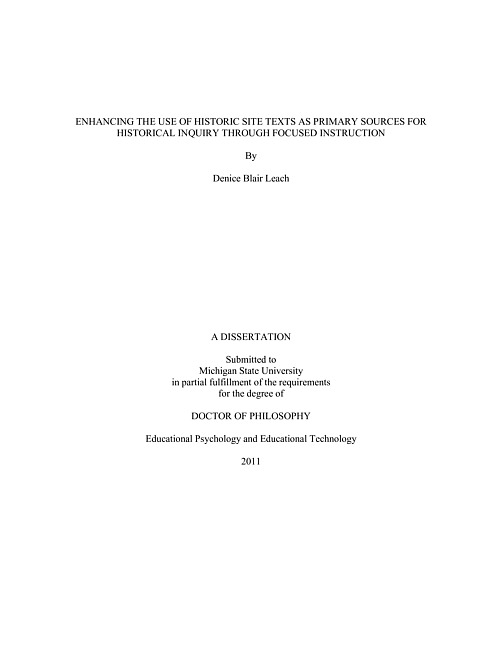 Enhancing the use of historic site texts as primary sources for historical inquiry through focused instruction