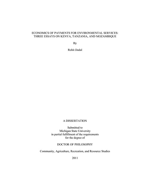 Economics of payments for environmental services : three essays on Kenya, Tanzania, and Mozambique