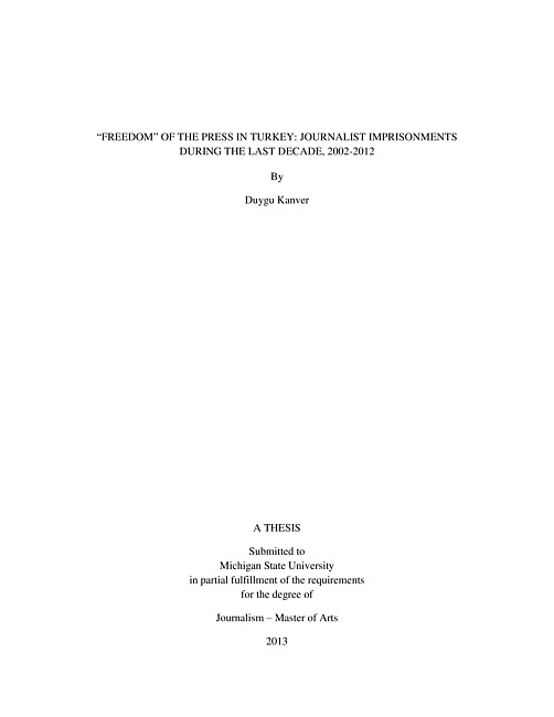 "Freedom" of the press in Turkey : journalist imprisonments during the last decade, 2002-2012