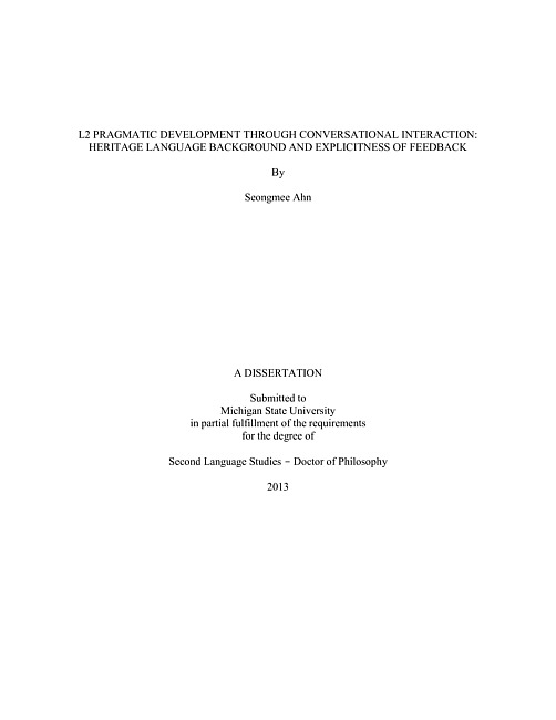 L2 pragmatic development through conversational interaction : heritage language background and explicitness of feedback
