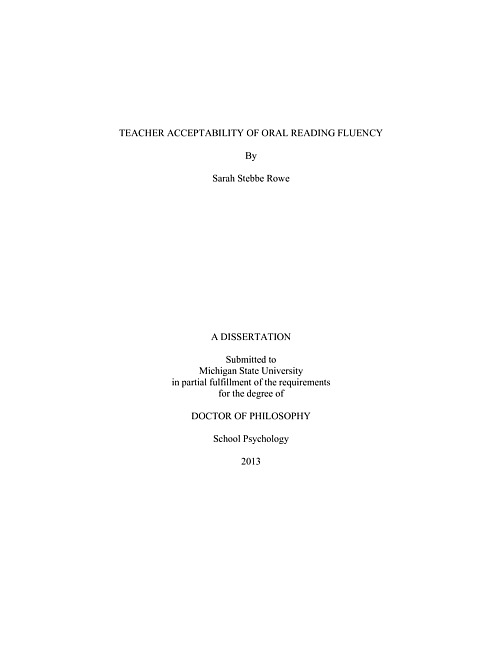 Teacher acceptability of oral reading fluency