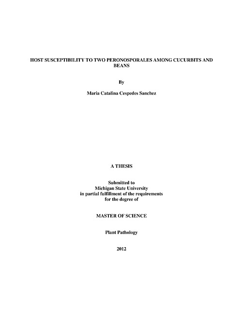 The Order Peronosporales, a group of fungal-like organisms commonly known as the water molds, incite many of the most devastating plant diseases worldwide. Two particular peronosperomycetes, Phytophthora capsici Leonian and Pseudoperonospora cubensis (Berk. and Curt.) Rostov., are a major threat for many Michigan vegetable crops. Phytophthora capsici, a limiting factor mainly for cucurbit and solanaceous production, was confirmed to infect snap bean (Phaseoulus vulgaris L.) in Michigan fields. Since dry edible beans are a variant of the snap bean species, we assessed eight dry edible bean cultivars for susceptibility to P. capsici. Different plant parts were inoculated independently with each of two P. capsici isolates. Results obtained in this study indicate that dry edible beans are susceptible to P. capsici under controlled conditions. Cucurbit downy mildew, caused by Pseudoperonospora cubensis is the most devastating foliar disease for cucurbits. Forty-one cucurbit cultigens (i.e., commercial cultivars and plant introductions) from five different genera were assessed for their susceptibility to natural infection by P. cubensis in a Michigan research field during 2010 and 2011. Results confirmed that Cucumis is the most susceptible genus to downy mildew, Citrullus cultigens presented small necrotic lesions, and no visible infection was found on cultigens of Cucurbita moschata and C. pepo.