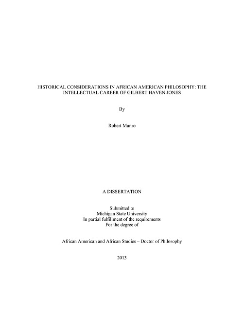 Historical considerations in African American philosophy : the intellectual career of Gilbert Haven Jones