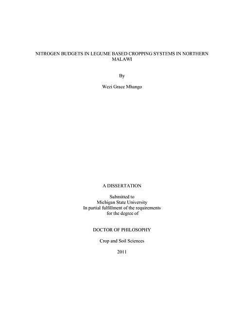 Nitrogen budgets in legume based cropping systems in northern Malawi