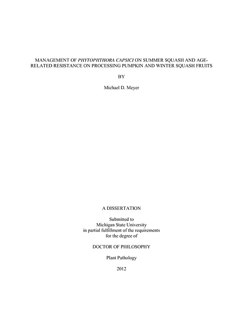 Management of Phytophthora capsici on summer squash and age-related resistance on processing pumpkin and winter squash fruits