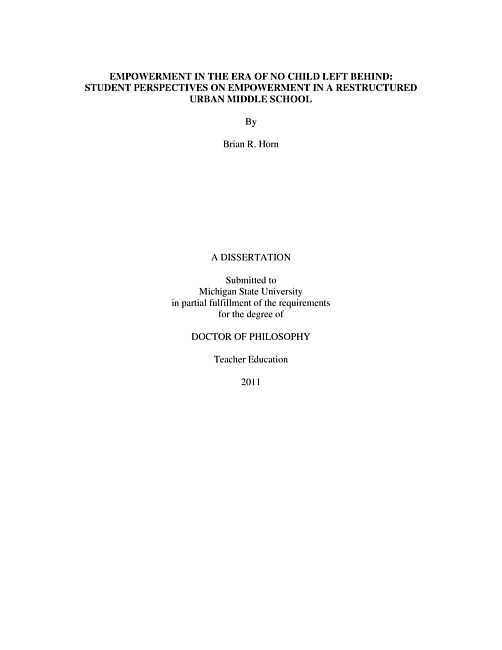 Empowerment in the era of No Child Left Behind : student perspectives on empowerment in a restructured urban middle school