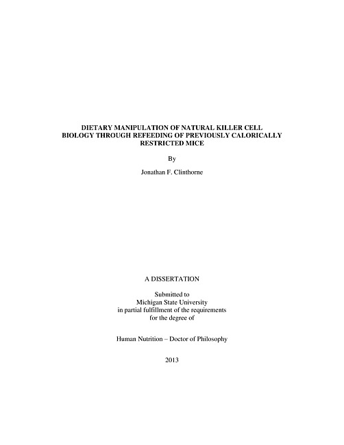 The dynamic role of natural killer (NK) cells in immunology has been demonstrated in numerous fashions, proving they are much more than "natural killers". However, NK cells are perhaps still the least well understood lymphocyte, due to their relatively low abundance and the limited transgenic models available for study. An innate immune cell that plays a critical role in providing early immunity against viral infections and cancers, NK cells are becoming increasingly recognized for shaping and directing immune responses. Accounting for approximately 5-25% of peripheral blood mononuclear cells in humans and 5-10% of lymphocytes in murine circulation, NK cells have very similar functional attributes in both species, making mice an ideal model system for the study of NK cell biology. Studies in mice have revealed the critical importance of NK cells in providing tumor surveillance as well as early protection from viral infections. Preclinical studies have underscored the utility of using NK cells as an immunotherapeutic technique to combat various cancers, while NK cell function is often associated with positive or negative outcomes in various disease states. Furthermore, various lifestyle factors have been found to positively or negatively influence NK cell function. Among these lifestyle factors, diet has gained notoriety as being capable of influencing the homeostasis and function of NK cells. However, the mechanisms by which diet influences NK cells are not fully understood, highlighting the need for a better understanding of the molecular and cellular mechanisms by which diet influences NK cell development. Thus, our laboratory has extensively studied the effects of the restriction of energy intake, or caloric restriction (CR) on NK cell function and biology at the organismal, cellular, and molecular level. Here we describe a series of experiments investigating the role of energy intake on immunity to influenza virus, with a focus on NK cells. We describe a series of studies that identify the specific changes to NK cells induced by CR, both beneficial and potentially damaging. In these experiments we show that CR results in fewer NK cells with a mature phenotype, and that expression of transcription factors critical for NK cell maturation are reduced by CR. We also demonstrate that thymic derived NK cells are present in normal numbers in CR mice and have enhanced function. In a series of experiments demonstrating the intricate relationship between immunity and metabolism we show how refeeding of CR mice restores NK cell homeostasis and function, both before, and during influenza infection. Using in vitro techniques combined with ex vivo analysis of metabolic signaling pathways, we provide potential mechanisms by which CR impairs NK cell maturation. These studies serve to highlight the critical role of optimal nutrition in maintaining NK cell homeostasis and function. To our knowledge, this dissertation is the first data presented that clearly details the effects of CR on NK cell development and homeostasis, as well as the molecular and biochemical pathways mediating this effect.