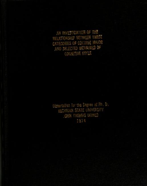 An investigation of the relationship between three categories of college major and selected measures of cognitive style