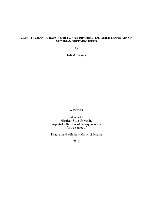 Climate change, range shifts, and differential guild responses of Michigan breeding birds