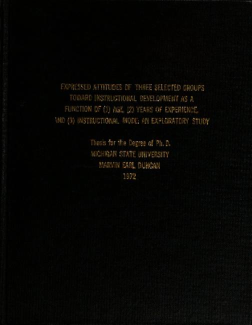 Expressed attitudes of three selected groups toward instructional development as a function of (1) age, (2) years of experience and (3) instructional mode : an exploratory study