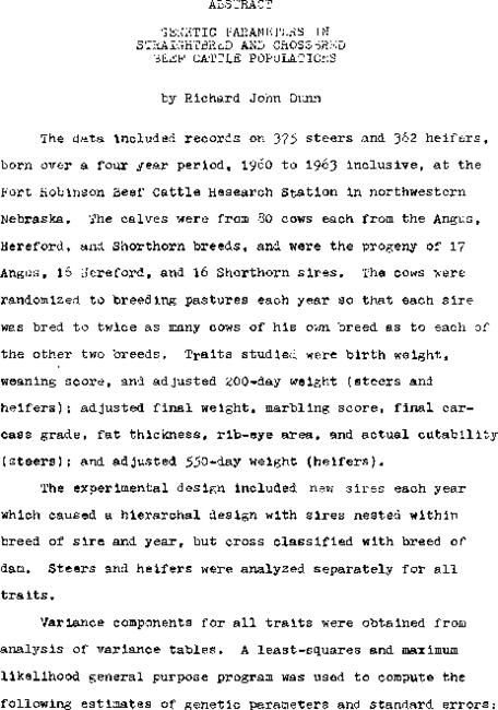 Genetic parameters in straightbred and crossbred beef cattle populations