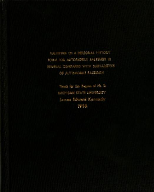 Validities of a personal history form for automobile salesmen in general compared with subvarieties of automobile salesmen