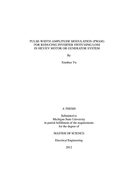 Ideally the power converters are supposed to be lossless. However in the real world there are many reasons that can cause power loss in the power converter system. Therefore minimizing the power loss and operating system at high efficiency point is an essential step towards developing optimized power conversion system. This thesis introduces a novel PWM control strategy - "Pulse-Width-Amplitude Modulation (PWAM)" method for HEV/EV motor or generator system. This modulation method is quite different from other PWM methods that have been well researched or commonly used for the inverter in HEV/EV system. By using this method, only one phase leg of the inverter is doing switching action at any time. Therefore, the inverter total switching time is reduced to one third comparing with conventional SPWM method and the total switching loss can be reduced by at least 50% or even more depending on the load condition (power factor). In addition, the inverter dc-link requires much smaller capacitor when PWAM method is applied, which makes the system smaller size and lighter weight. Simulation and experimental results are provided to verify inverter efficiency improvement.
