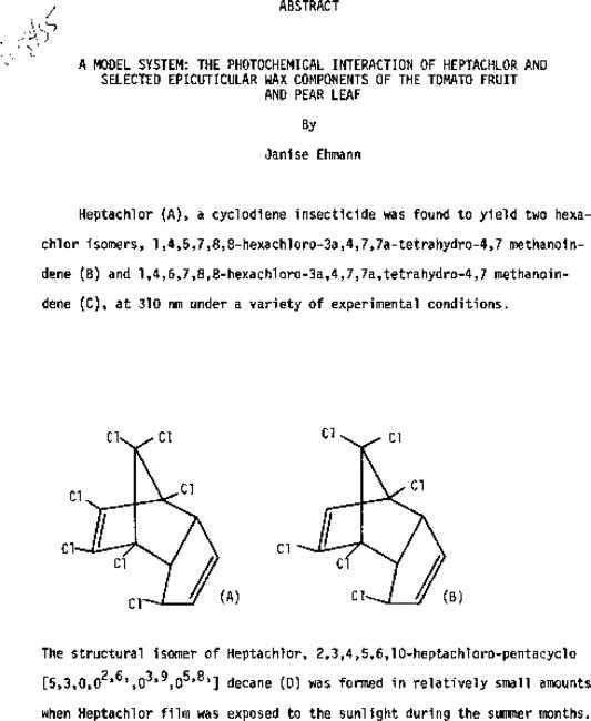 A model system : the photochemical interaction of heptachlor and selected epicuticular wax components of the tomato fruit and pear leaf