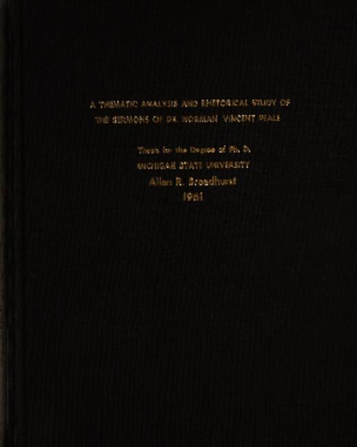 A thematic analysis and rhetorical study of the sermons of Dr. Norman Vincent Peale