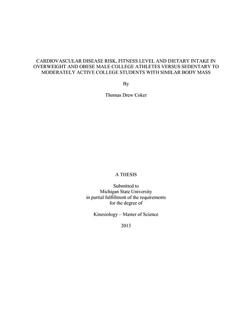Cardiovascular disease risk, fitness level and dietary intake in overweight and obese male college athletes versus sedentary to moderately active college students with similar body mass
