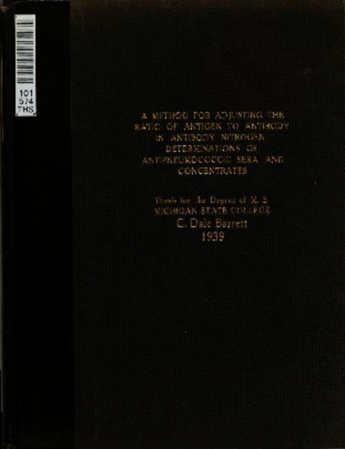 A method for adjusting the ratio of antigen to antibody in antibody nitrogen determinations of antipneumococcic sera & concetrates