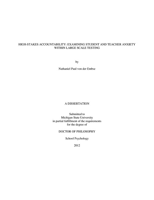 High-stakes accountability : examining student and teacher anxiety within large scale testing