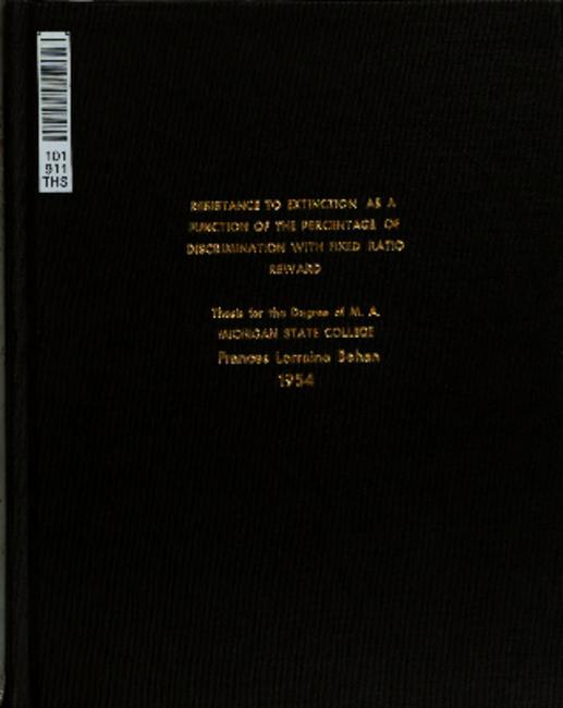 Resistance to extinction as a function of the percentage of discrimination with fixed ratio reward