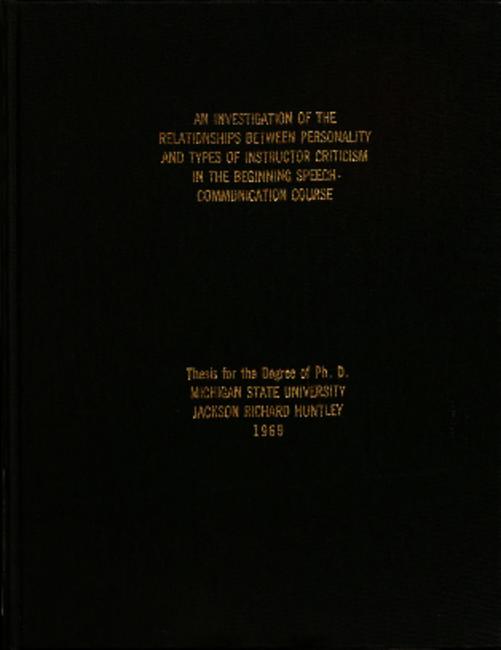 An investigation of the relationships between personality and types of instructor criticism in the beginning speech-communication course