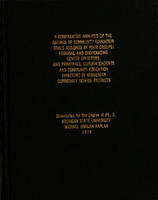 A comparative analysis of the ratings of community education goals assigned by four groups : regional and cooperating center directors; and principals, superintendents and community education directors in Minnesota community school districts