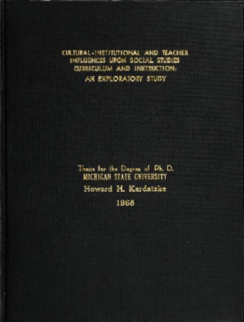 Cultural-institutional and teacher influences upon social studies curriculum and instruction : an exploratory study
