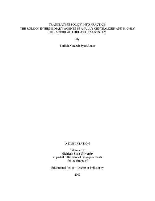 Translating policy into practice : the role of intermediary agents in a fully centralized and highly hierarchical educational system