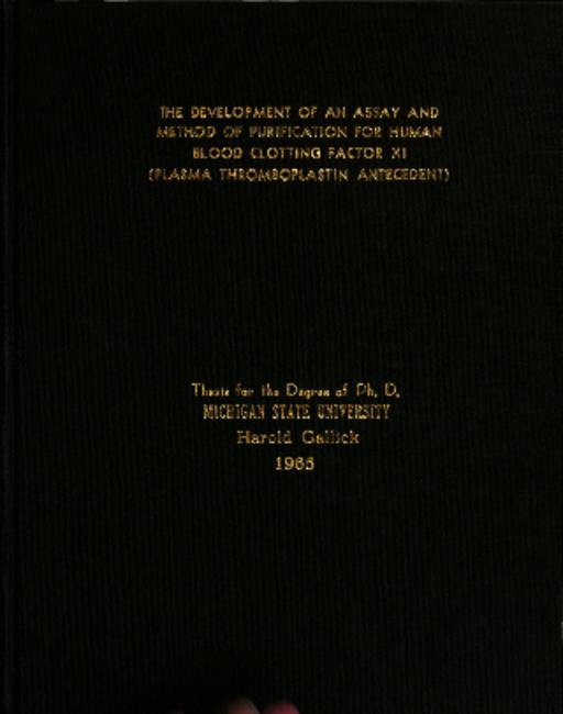 The development of an assay and method of purification for human blood clotting factor XI (plasma thromboplastin antecedent)