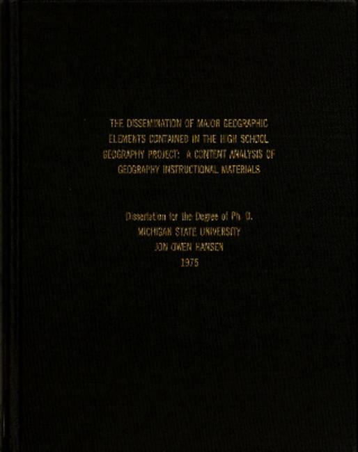 The dissemination of major geographic elements contained in the High School Geography Project a content analysis of geography instructional materials
