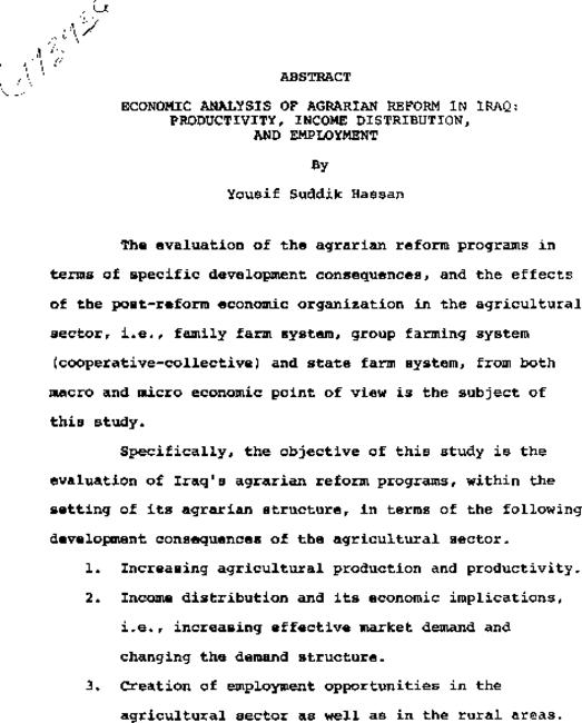 Economic analysis of agrarian reform in Iraq : productivity, income distribution, and employment