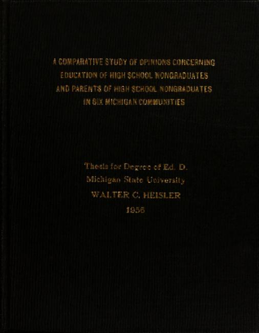 A comparative study of opinions concerning education of high school nongraduates and parents of high school nongraduates in six Michigan communities