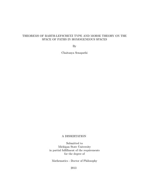 "Homotopy connectedness theorems for complex submanifolds of homogeneous spaces (sometimes referred to as theorems of Barth-Lefshetz type) have been established by a num- ber of authors. Morse Theory on the space of paths lead to an elegant proof of homotopy connectedness theorems for complex submanifolds of Hermitian symmetric spaces. In this work we extend this proof to a larger class of compact complex manifolds namely quotients of complex orthogonal, unitary groups and exceptional groups."--Abstract.