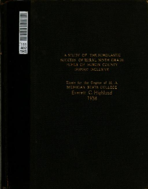 A study of the scholastic success of rural ninth grade pupils of Huron County, 1931-1937 inclusive