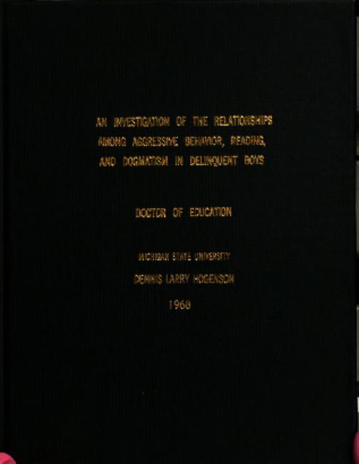 An investigation of the relationships among aggressive behavior, reading, and dogmatism in delinquent boys