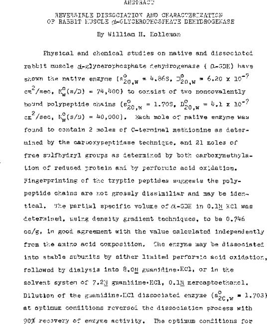 Reversible dissociation and characterization of rabbit muscle ₋ga₋s [alpha]-glycerophosphate dehydrogenase