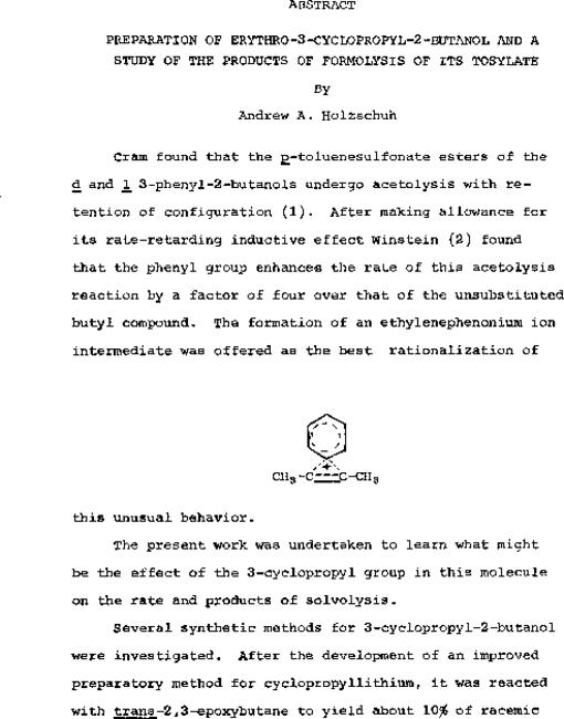 Preparation of erythro-3-cyclopropyl-2-butanol and a study of formolysis of its tosylate