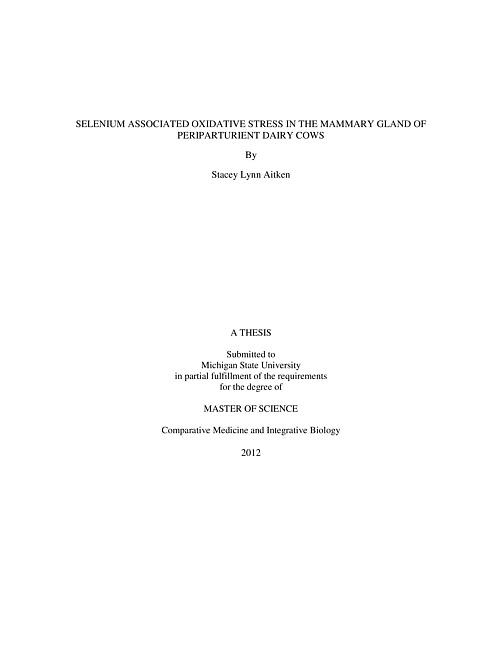 Selenium associated oxidative stress in the mammary gland of periparturient dairy cows