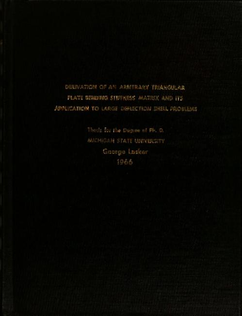 Derivation of an arbitrary triangular plate bending stiffness matrix and its application to large deflection shell problems
