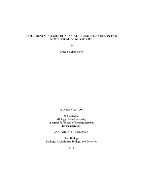 Experimental studies of adaptation and speciation in two neotropical Costus species