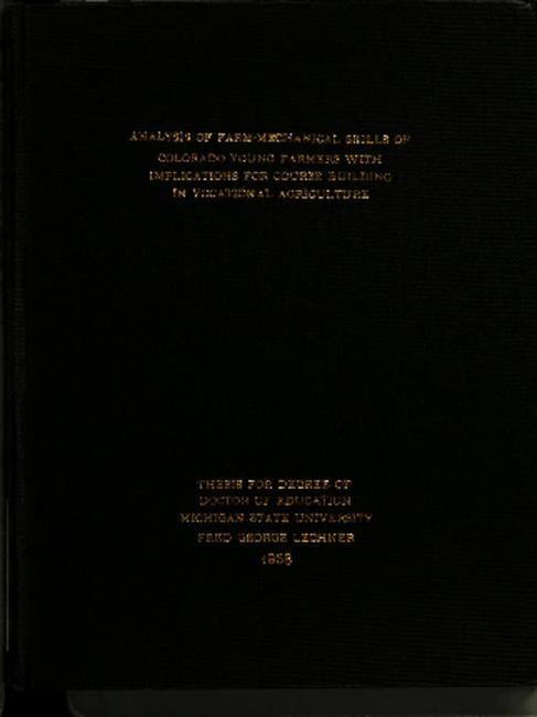 Analysis of farm-mechanical skills of Colorado young farmers with implications for course building in vocational agriculture