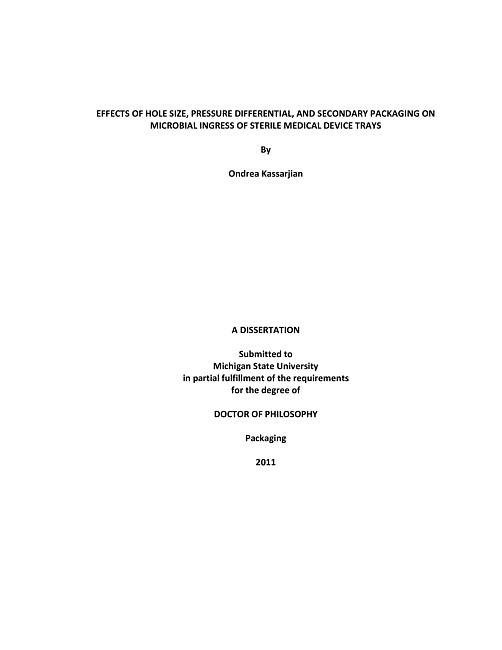 Effects of hole size, pressure differential, and secondary packaging on microbial ingress of sterile medical device trays
