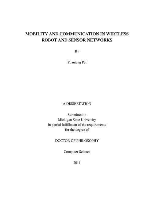 Mobility is a primary goal of many wireless communication systems. In recent years, mobile multi-hop wireless networks, such as mobile wireless sensor networks and wireless robot networks, have attracted increased attention and have been extensively studied. However, most current research does not consider the interdependence of communication and mobility and much assume an obstacle-free environment in their problem modeling and solving process.In this dissertation, we discuss several research topics relevant to the above two issues of communication and mobility in wireless robot and sensor networks. First, we present multi-robot real-time exploration, which calls for the joint consideration of mobility and communication: it requires video and audio streams of a newly explored area be transmitted to the base station in a timely fashion as robots explore the area. Simulations show that our mobility model has achieved both improved communication quality and enhanced exploration efficiency.Second, we further investigate the above problem with two critical and real-world network conditions: (1) heterogeneous transmission ranges and link capacities, and (2) the impact of interference. The conditions increase the model complexity but significantly influence the actual available bandwidth and the required node size in placement. We jointly consider the relay placement and routing with these two critical conditions.Third, we introduce an online relay deployment paradigm to support remote sensing and control when mobile nodes migrate farther from the base station in a cost-effective system of mobile robots, static sensors and relays. A novel multi-robot real-time search method called STAtic Relay aided Search (STARS) is presented to allow robots to search in a known environment. Its solution is based on our near-optimal solution to a new variation of the multi-traveling salesman problem: precedence constrained two traveling salesman (PC2TSP).Fourth, we propose a heterogenous multi-robot exploration strategy with online relay deployment for an unknown environment called Bandwidth aware Exploration with a Steiner Traveler (BEST). In BEST, a relay-deployment node (RDN) tracks the FNs movement and places relays when necessary to support the video/audio streams aggregation to the base station. This problem inherits characteristics of both the Steiner minimum tree and traveling salesman problems. Extensive simulations show that BEST further enhances the exploration efficiency.While the first four topics deal with communication and mobility issues in powerful but expensive robotic systems, the fifth topic focuses on a special type of low cost, limited capability mobile sensors called hopping sensors, whose unique method of movement makes them suitable for rugged terrains. We present (1) a distributed message forwarding model called Binary Splitting Message Forwarding (BSMF) and (2) a grid based movement model unique to these hopping sensors. Simulation shows that our scheme significantly reduces the communication overhead and achieves relatively constant total energy consumption with varying amount of obstructions.Finally, we discuss the future work directions of this research work. We believe that a heterogeneous mobile platform to support real-time stream transmission by mobile robots, static sensor and communication devices, have great potential in various civilian and military applications, where the communication quality of service is critically important, as well as the mobility efficiency.