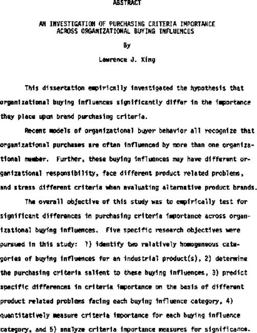An investigation of purchasing criteria importance across organizational buying influences