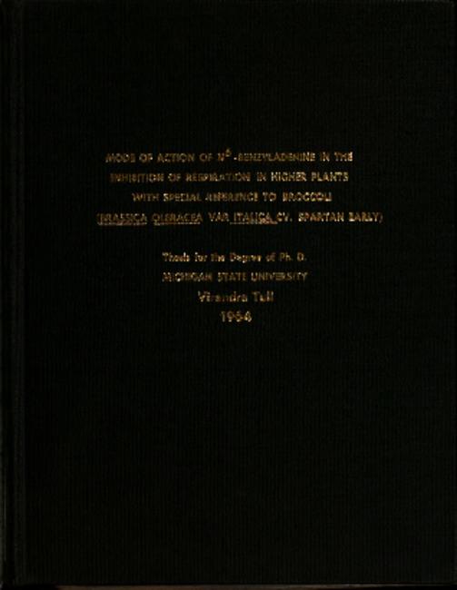 Mode of action of N₋p6₋s-benzyladenine in the inhibition of respiration in higher plants with special reference to broccoli (Brassica oleracea var italica cv. Spartan Early)