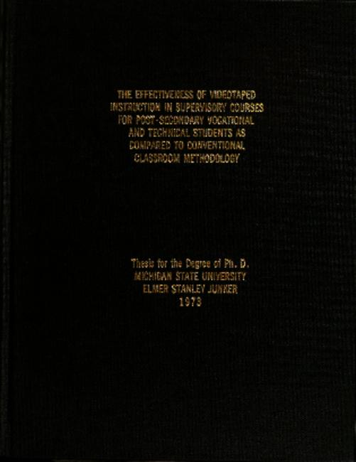 The effectiveness of videotaped instruction in supervisory courses for post-secondary vocational and technical students as compared to conventional classroom methodology